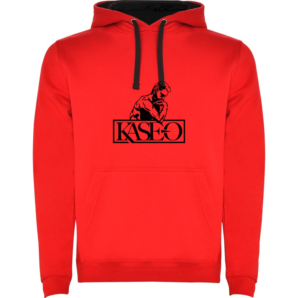 Sudadera con capucha Kase.O bicolor de doble tejido, con cordón contrastado ajustable, cubrecosturas en el cuello y bolsillo canguro. Punto canalé con elastano 1×1 en puños y cintura.